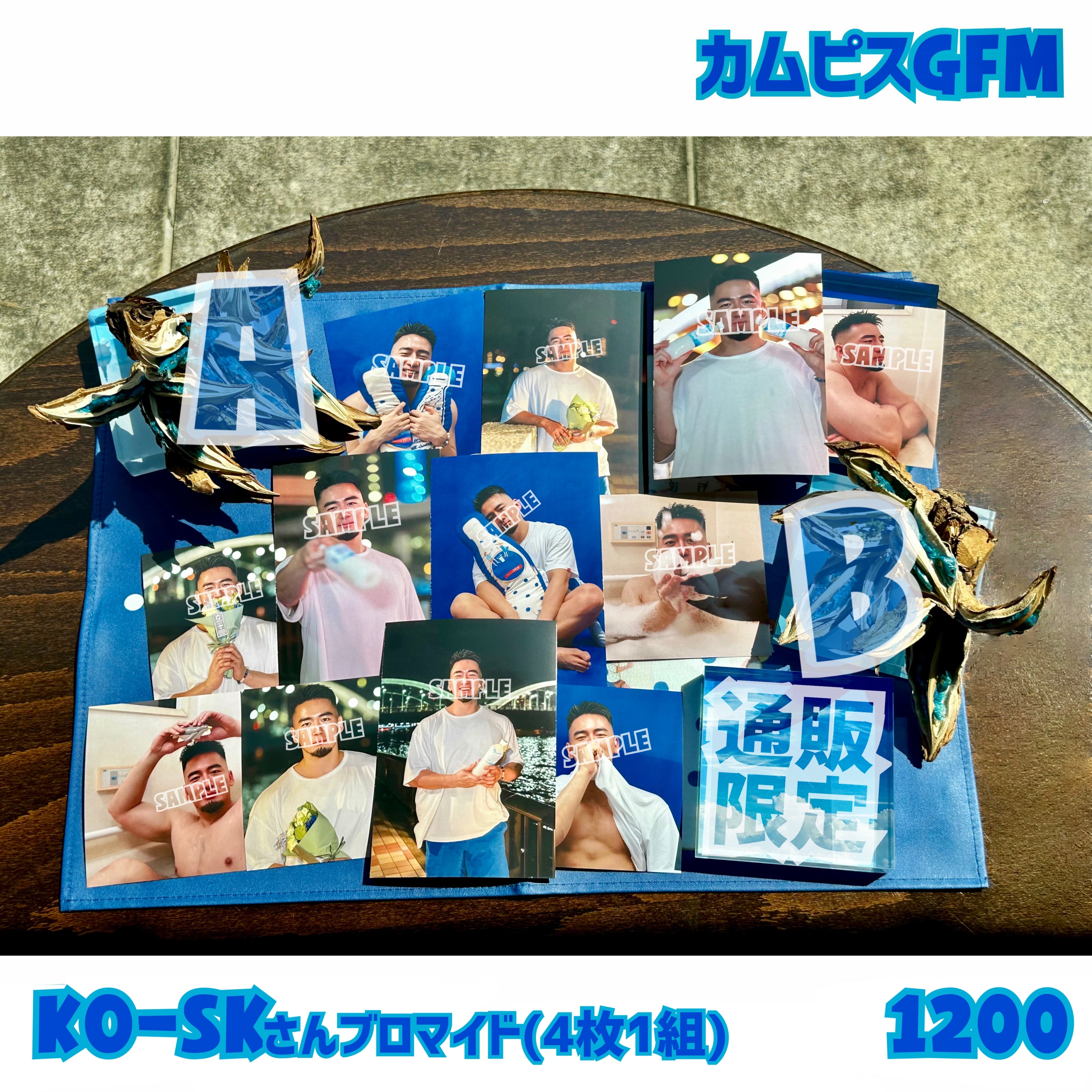 カムピスシャワーナイトpresents『GOGO顔射(ファンサ)ミーティング』GOGO KO-SKさんのブロマイドです。写真上段がA、中段がB、下段が通販限定で、いずれも4枚1組です。