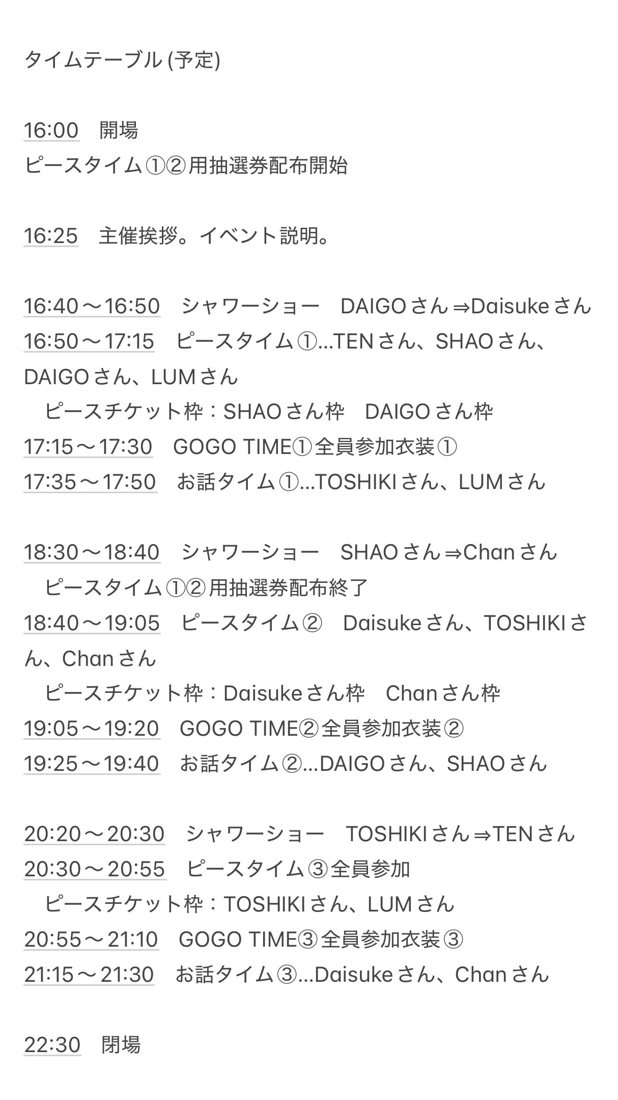•ピースチケット枠のピースタイム・お話タイムの予定時刻は画像一覧のタイムテーブルをご確認ください。