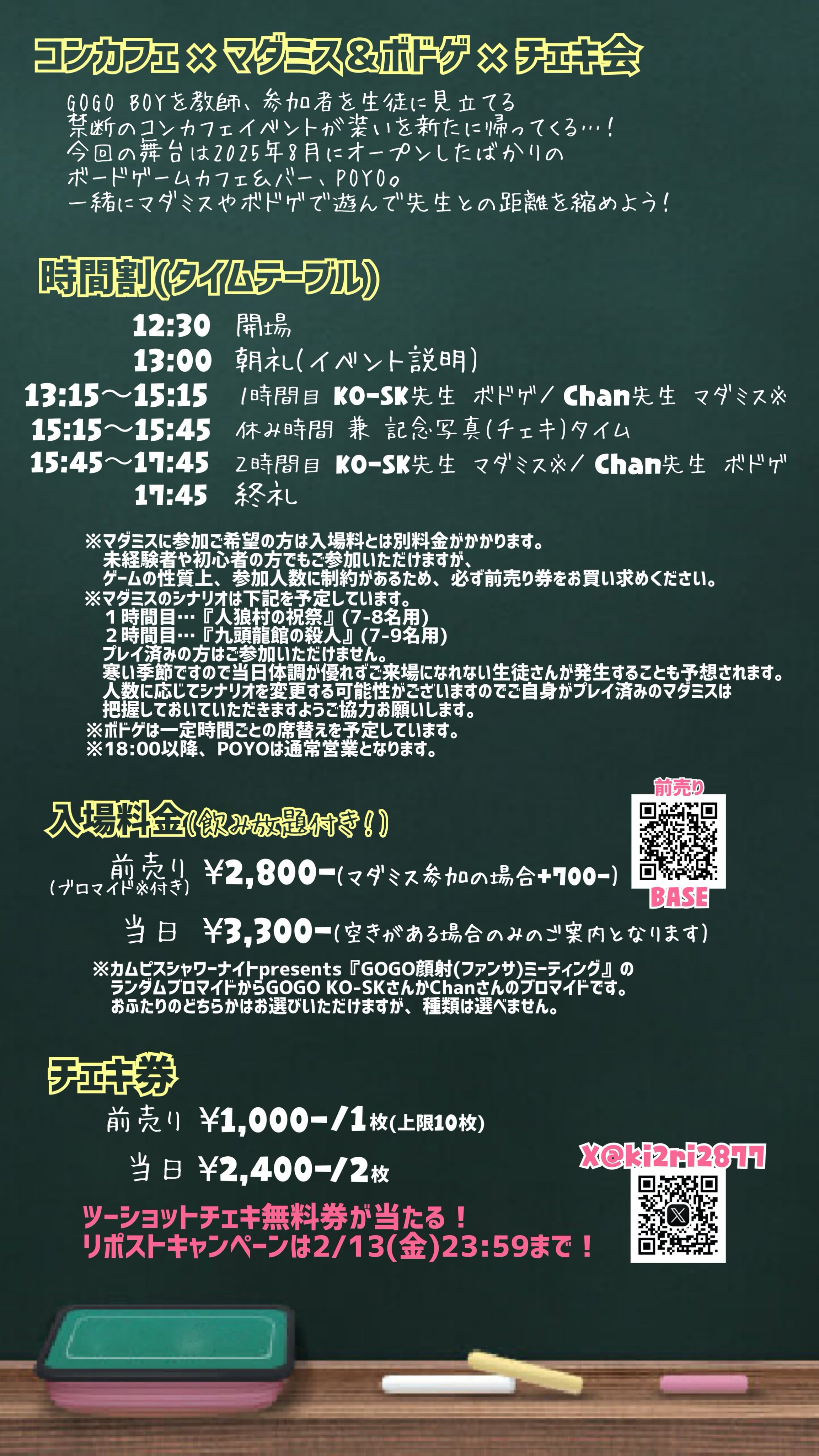 特典はカムピスシャワーナイトpresents 『GOGO顔射(ファンサ)ミーティング』のランダムブロマイドからGOGO KO-SKさんかChanさんのブロマイド(各5種)です。